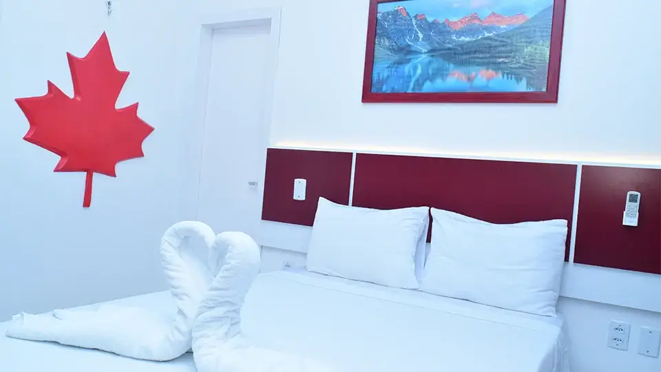 Pousada com parque aquático em Boa Vista, Roraima. Bem-vindo ao encantador apartamento temático canadense da Pousada Country K, perfeito para uma estadia romântica ou uma escapada relaxante. Decorado com elementos tradicionais do Canadá, nosso apartamento oferece uma experiência autêntica e confortável para até 2 pessoas (ou 3 com um colchão extra).