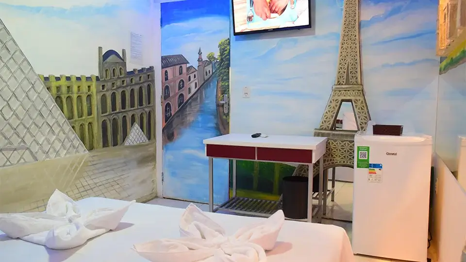 Pousada com parque aquático em Boa Vista, Roraima. Bem-vindo ao encantador apartamento temático francês da Pousada Country K, perfeito para uma estadia romântica ou uma escapada relaxante. Decorado com elementos tradicionais da França, nosso apartamento oferece uma experiência autêntica e confortável para até 2 pessoas (ou 3 com um colchão extra).