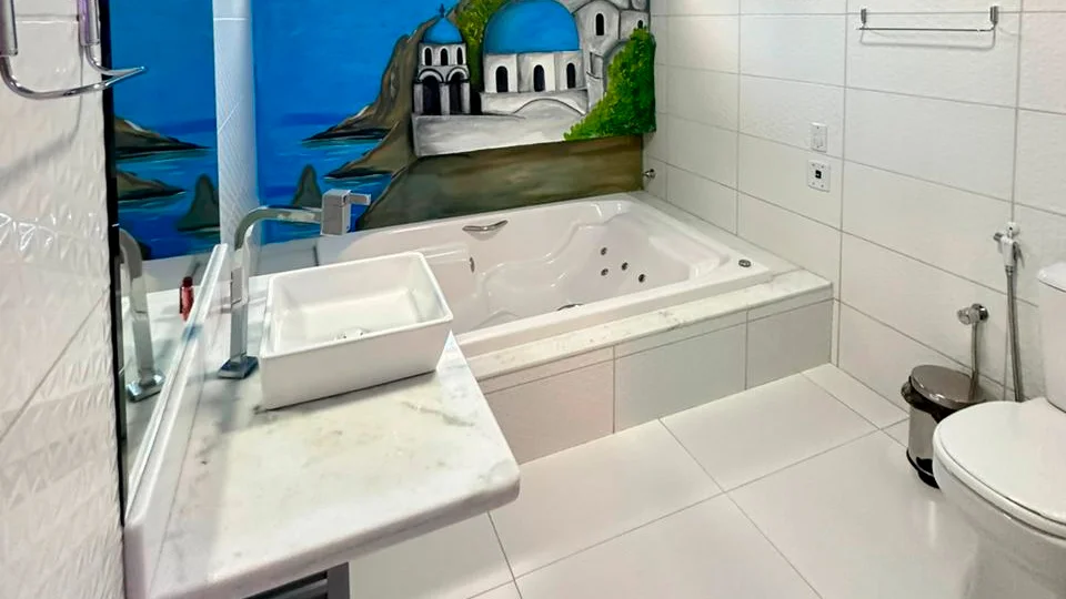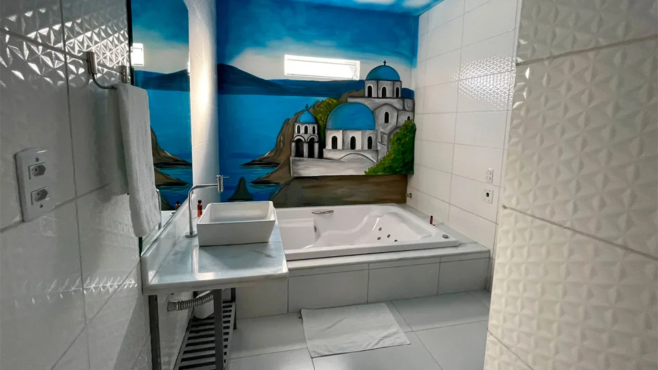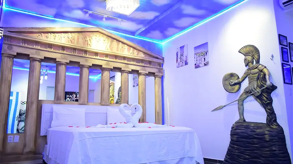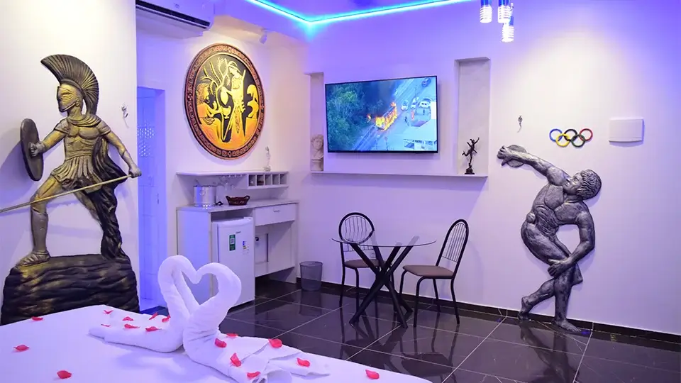 Bem-vindo ao encantador apartamento temático grego da Pousada Country K, perfeito para uma estadia romântica ou uma escapada relaxante. Decorado com elementos tradicionais da Grécia, nosso apartamento oferece uma experiência autêntica e confortável para até 2 pessoas (ou 3 com um colchão extra).